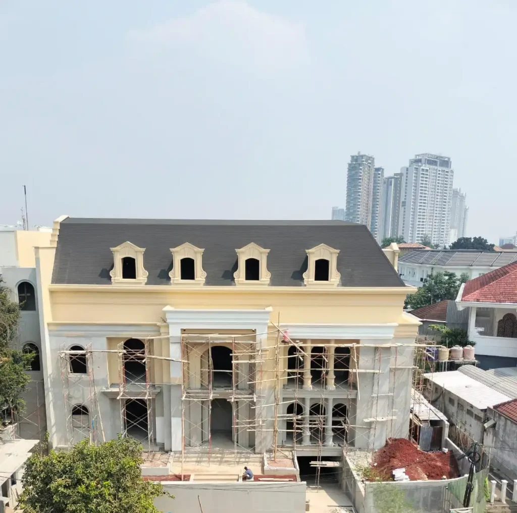 Proyek rumah pribadi berarsitektur klasik Eropa modern dengan total luas bangunan 3.148 m² ini menampilkan presisi struktural, detail artistik, dan kemewahan material kelas dunia.